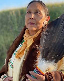 She teaches traditional arts, sewing, beading and quill work and is known for her deep dedication to the traditional Lakota way of life. As a senior elder, Verola holds space for her tribe’s Sun Dance initiates with her prayers, songs and mediations.
